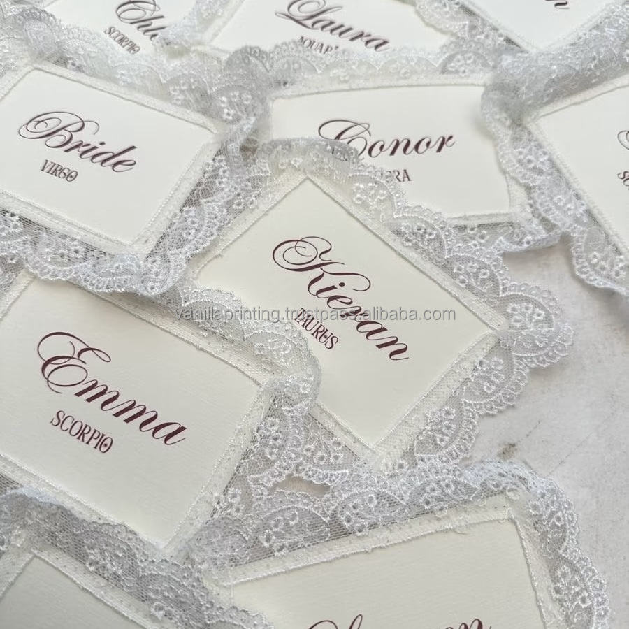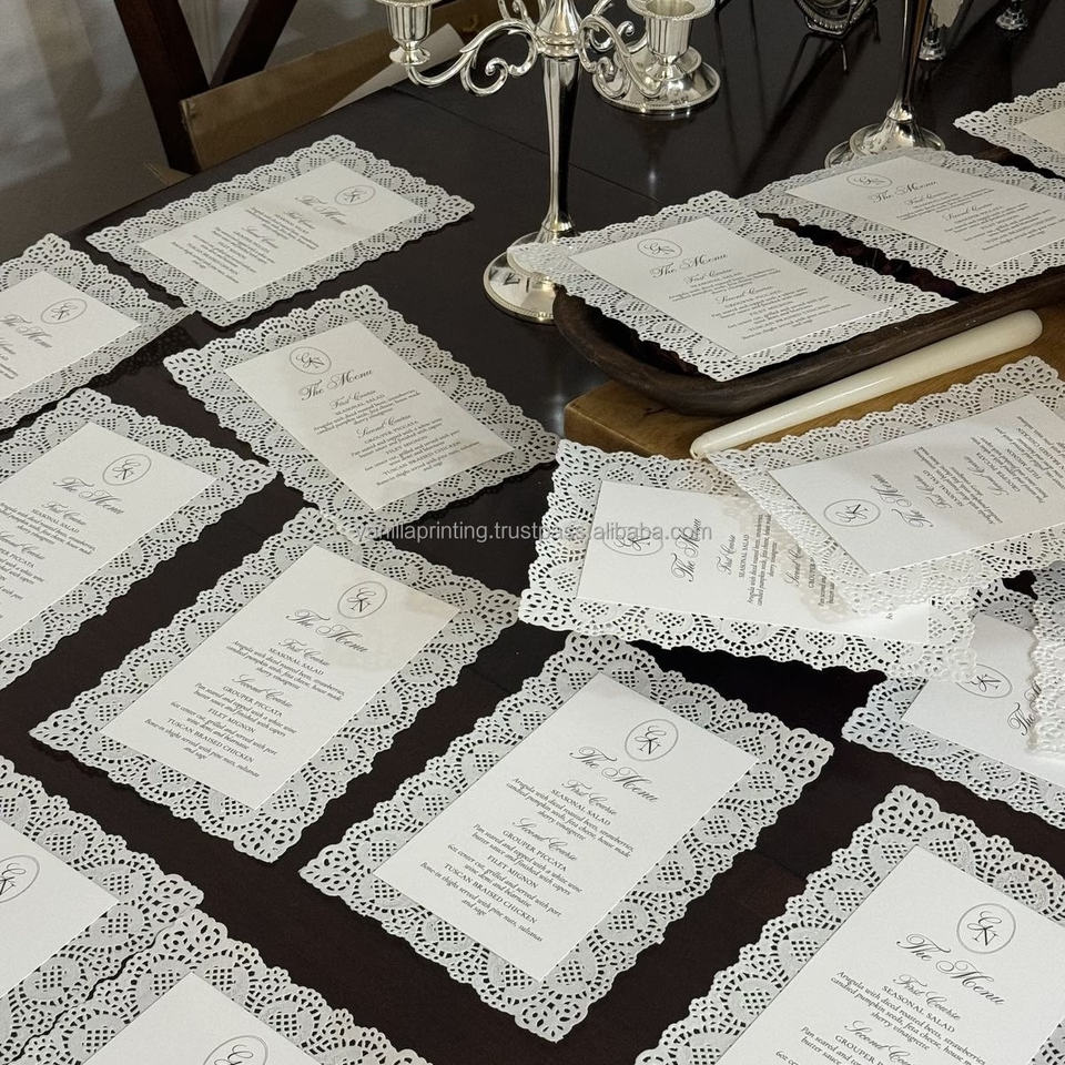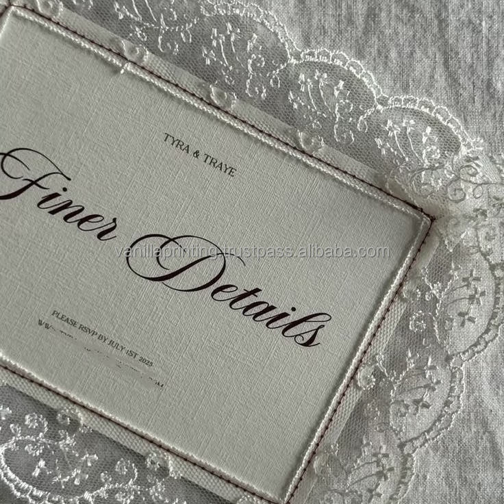 การ์ดอวยพรงานแต่งงานลูกไม้ทำมือสุดหรู สไตล์วินเทจ สง่างาม พิมพ์แบบ Letterpress ลายนูน กระดาษออฟเซ็ต พร้อมโลโก้สั่งทำ