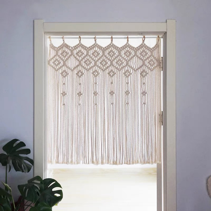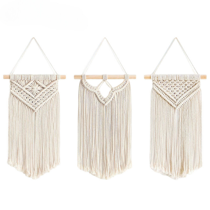 ผ้าถักลายใบแมคคราเม่แฮนด์เมดหรูหราเป็นมิตรกับสิ่งแวดล้อมสีที่กำหนดเองแขวนผนังพรมศิลปะขนาดใหญ่สไตล์โบฮีเมียนของตกแต่งบ้าน