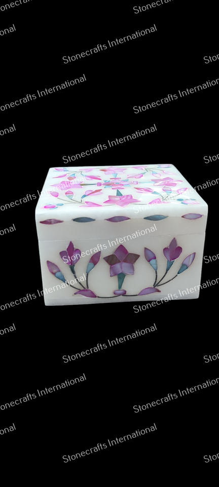 กล่องเครื่องประดับหินอ่อนทำด้วยมือสุดหรูพร้อมแม่ของไข่มุกดีไซน์สี่เหลี่ยมผืนผ้าทันสมัยสำหรับเด็กผู้หญิงของขวัญ