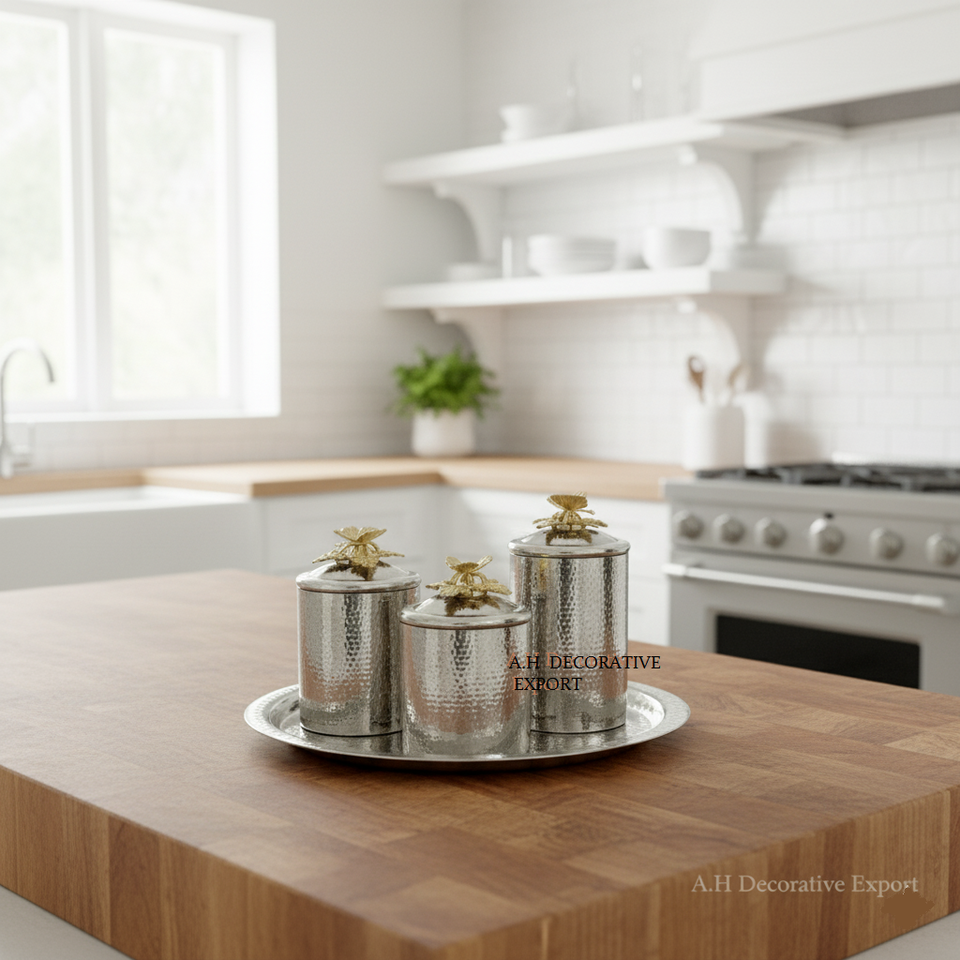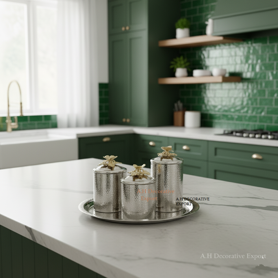 ชุดกระป๋องโลหะทำด้วยมือสุดหรูสำหรับเก็บชาบิสกิตฝาปิดด้านบนแบบพลิกได้คุณภาพสูงสำหรับตกแต่งบ้านห้องครัว