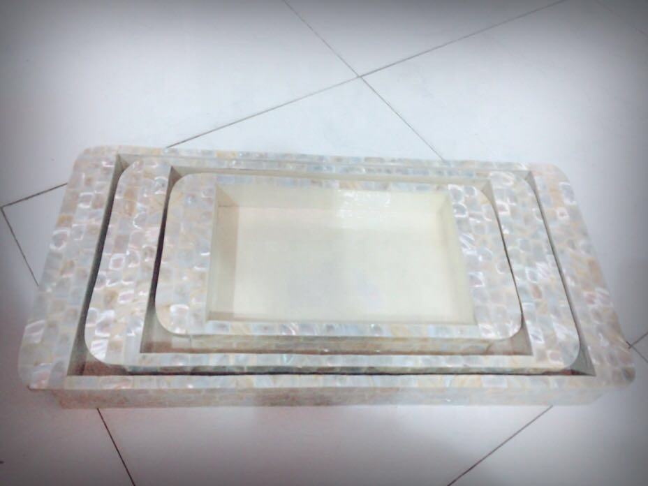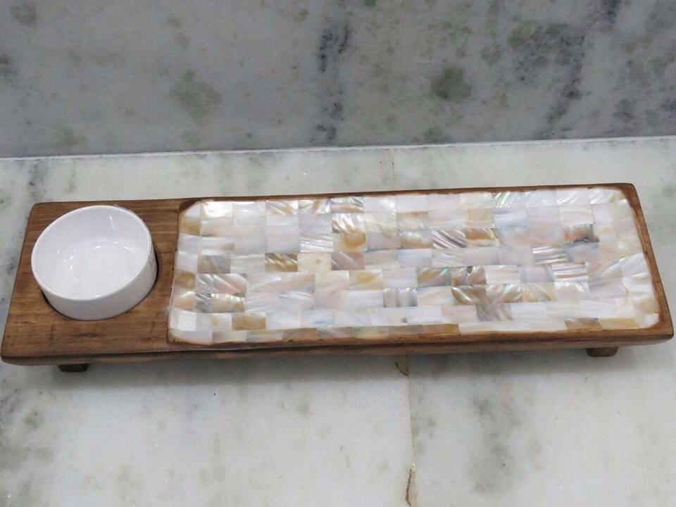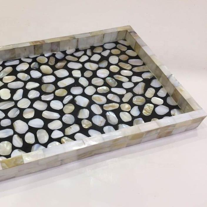ถาดเสิร์ฟและเก็บของรูปทรงสี่เหลี่ยมผืนผ้าลายมุกแท้ทำมือสุดหรู งานฝีมือประณีต สำหรับใช้ในครัว ผิวเงางาม อเนกประสงค์