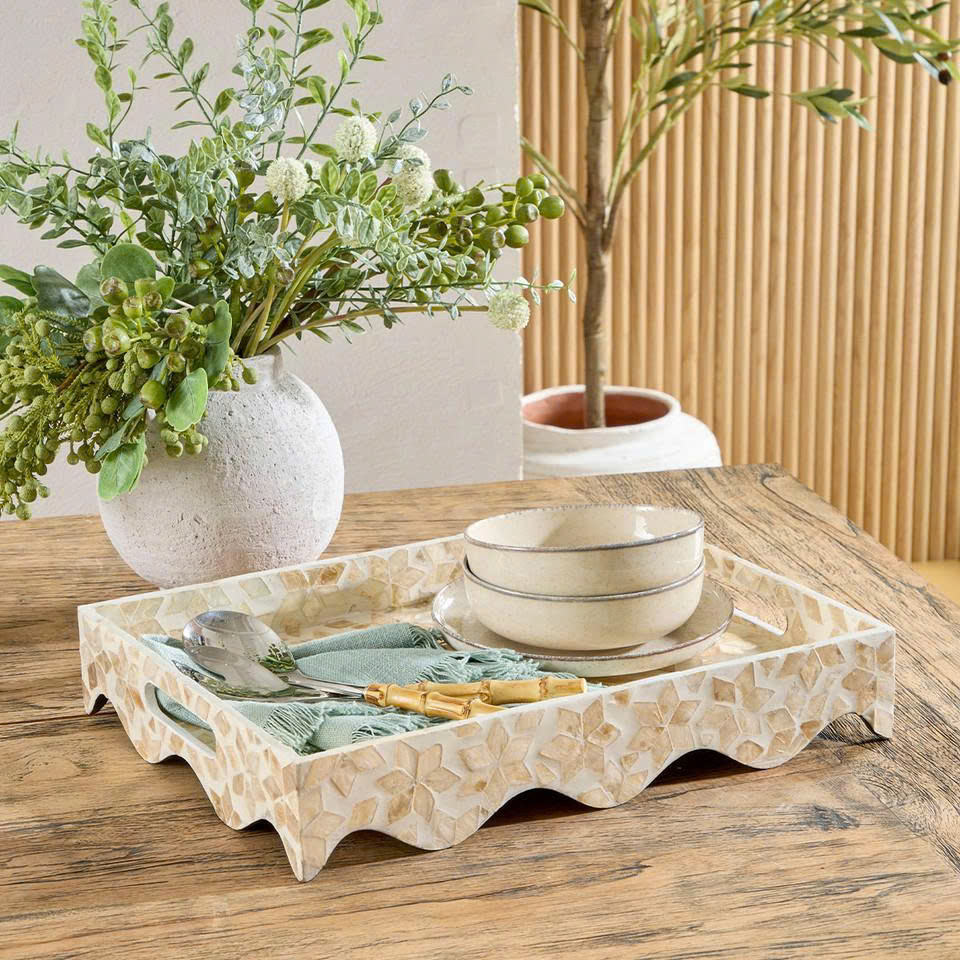 ถาดทรงเปลือกหอยมุกทำด้วยมือสุดหรูตัวจัดระเบียบตกแต่งสวยงามสำหรับใช้ในบ้านที่มีสไตล์