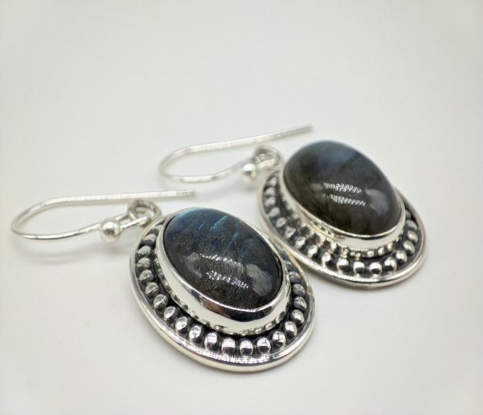ต่างหูหินลาบราดอไรต์ธรรมชาติทำมือสุดหรู เงินแท้ 925 ต่างหูแบบห้อย แฟชั่นสำหรับผู้หญิง ขายส่งเครื่องประดับ