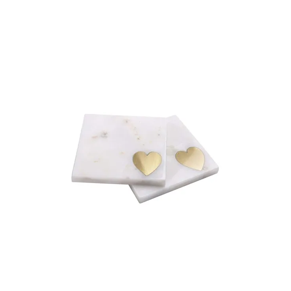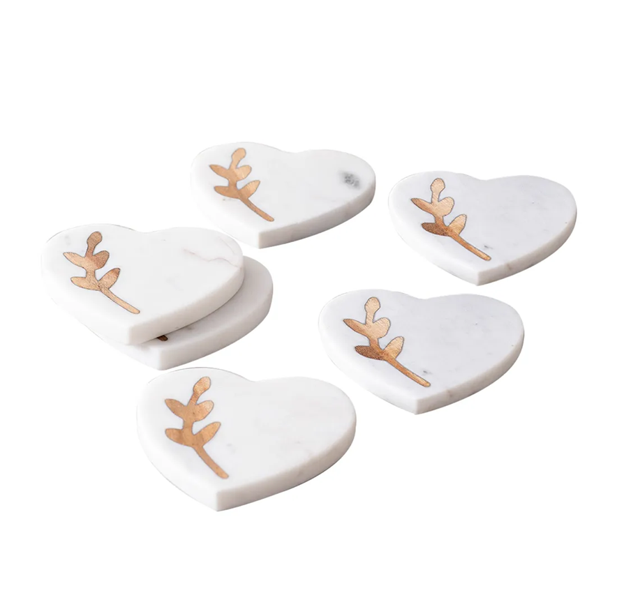 ที่รองแก้วทองเหลืองหินอ่อนธรรมชาติสีทองทำด้วยมือสุดหรูสำหรับทองเหลืองรูปหัวใจดีไซน์หรูหรา