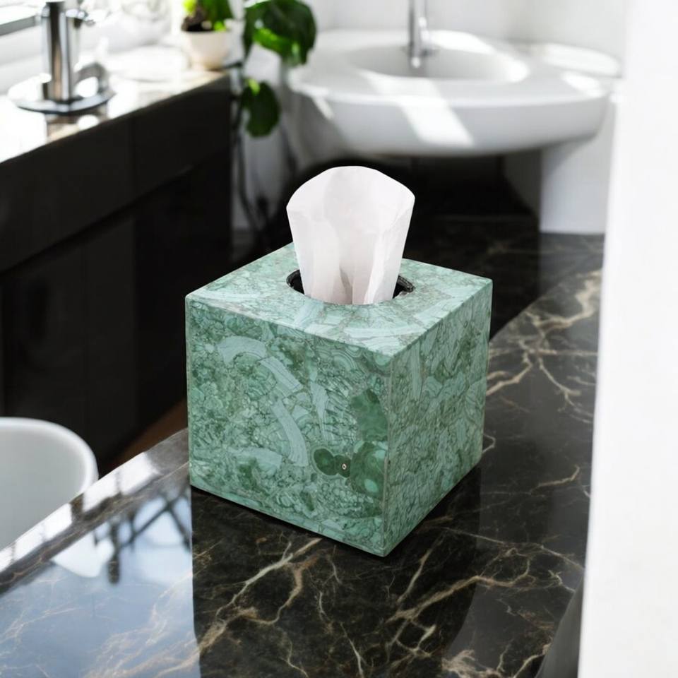 กล่องใส่กระดาษทิชชูหินมาลาไคต์ทรงสี่เหลี่ยมทำมือสุดหรู ดีไซน์ทันสมัยคุณภาพสูงสำหรับห้องน้ำและวางบนโต๊ะ