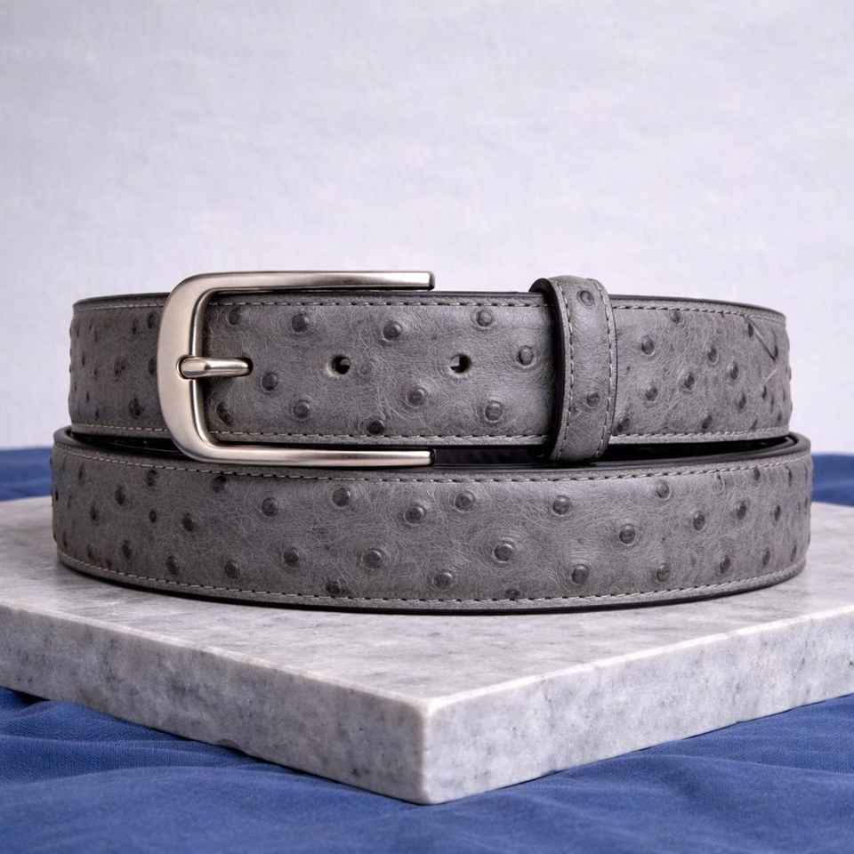 เข็มขัดหนังนกกระจอกเทศทำมือสุดหรู สีเทา เข็มขัดสำหรับผู้ชาย คุณภาพสูงพิเศษ เครื่องประดับแฟชั่น