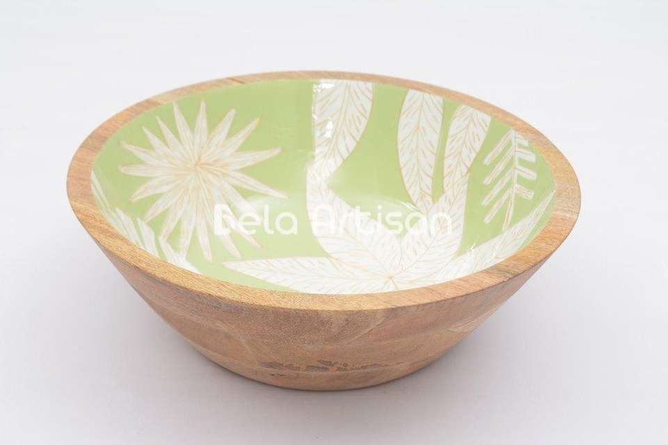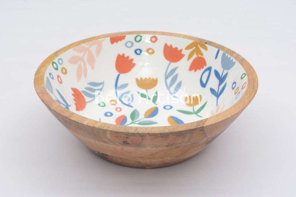 ชามไม้มะม่วงเคลือบเงาพิมพ์ลายหรูหรา ทำด้วยมือ สำหรับเสิร์ฟอาหาร
