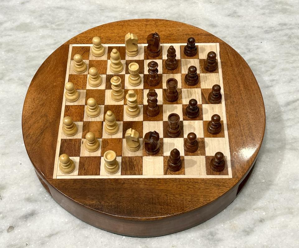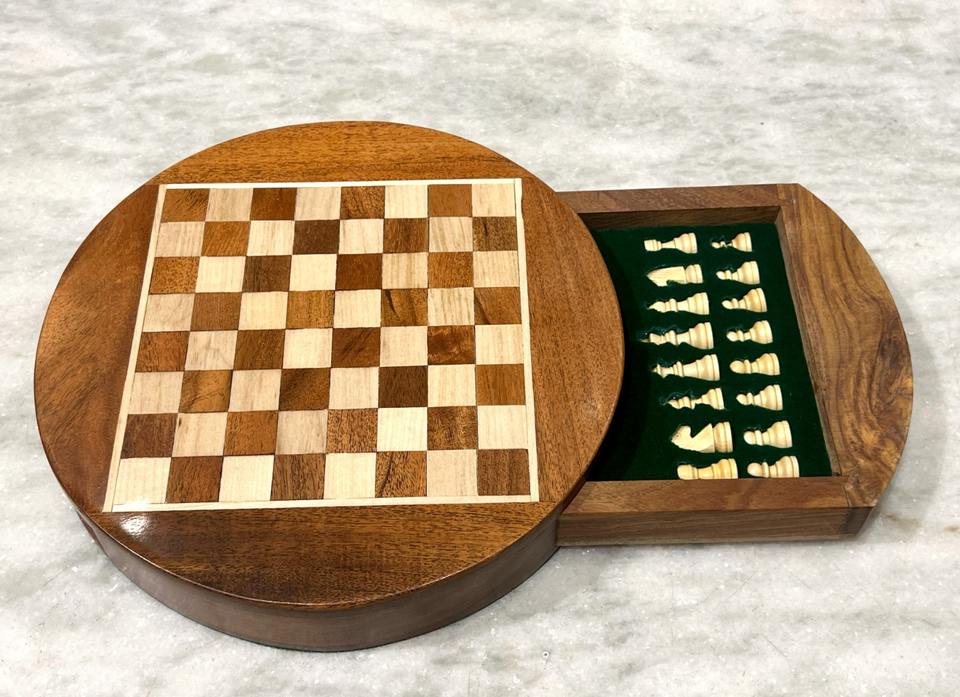 กระดานหมากรุกไม้ขัดเงาทำมือสุดหรู ขนาด 33x33x6 ซม. ชุดหมากรุกแม่เหล็กพร้อมตัวหมากรุกขนาด 5.5 ซม. ลิ้นชักหมุนได้ พร้อมการ์ดเกมปริศนา