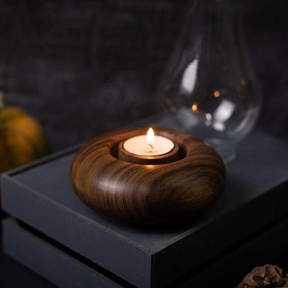 เชิงเทียนไม้ขัดเงาคุณภาพพรีเมียม งานแฮนด์เมดสุดหรู พร้อมปล่องแก้ว โคมไฟน้ำมันวอลนัทแท้ ขนาดใหญ่ สำหรับตกแต่งบ้านในเทศกาลคริสต์มาส