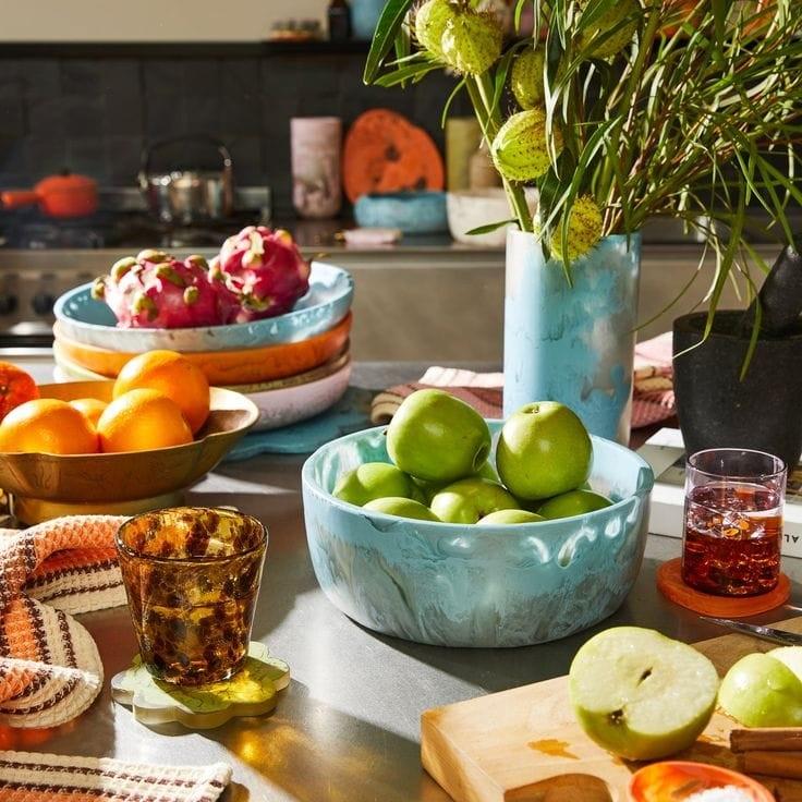 ชามผลไม้เรซิ่นทำมือสุดหรู ลายวนหลายสี ชามเสิร์ฟ ขนาดและสีตามสั่ง สำหรับโรงแรม ร้านอาหาร บาร์ ภาชนะใส่อาหารสไตล์ใหม่