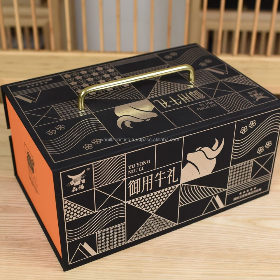 กล่องของขวัญแข็งแรงหรูหรา ทำมือ พร้อมหูหิ้ว ปิดด้วยแม่เหล็ก พิมพ์โลโก้ได้ กระดาษเคลือบพรีเมียม สำหรับชุดของขวัญวันหยุด ชาเนื้อวัว
