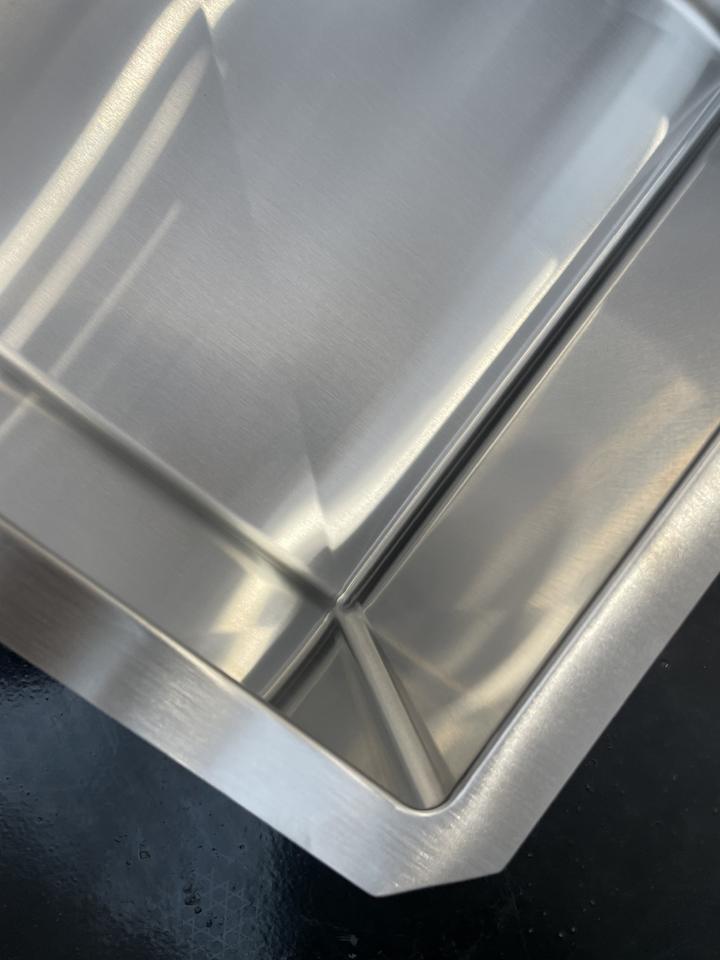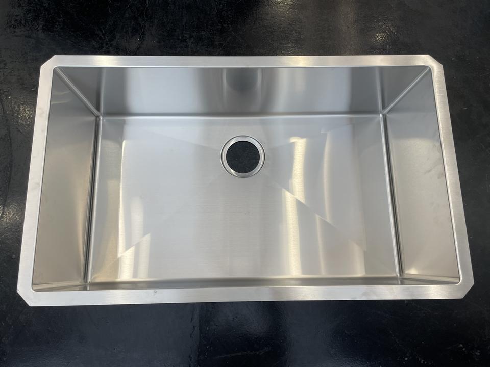 อ่างล้างจานครัวแบบฝังใต้เคาน์เตอร์ทรงสี่เหลี่ยมเดี่ยว ทำมืออย่างหรูหรา ขนาด 600x450 มม. หนา 0.8 มม. ผลิตจากสแตนเลส 304 มาตรฐานยุโรป ผลิตในเวียดนาม