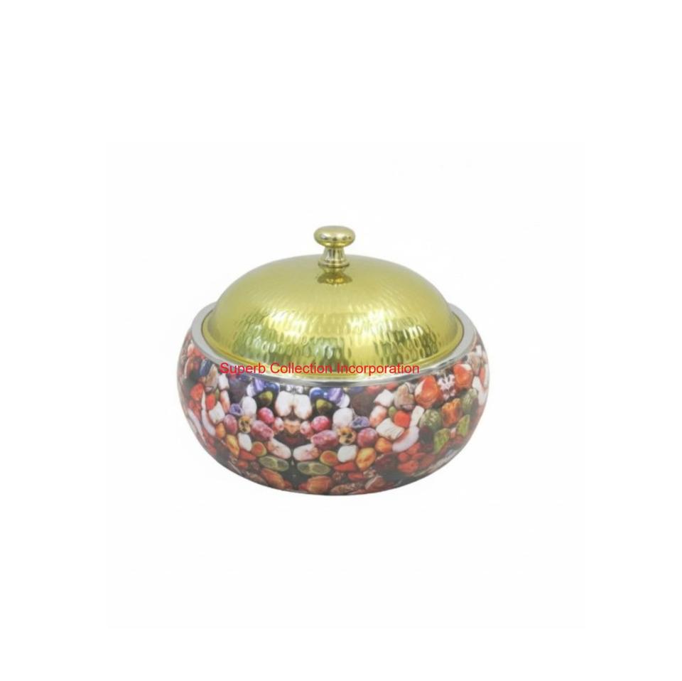 หม้อปรุงอาหารสแตนเลสสตีลแบบทำมือสุดหรูพร้อมฝาตอกและลวดลายดอกไม้สำหรับเสิร์ฟอาหารในบ้านและบุฟเฟ่ต์