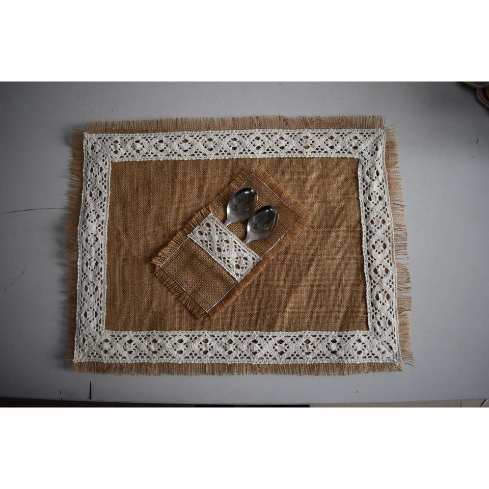 แผ่นรองจานทำมือสุดหรู รับทำโลโก้ ขายส่ง แผ่นรองจานปอกระเจาทอมือ พร้อมพู่และกระเป๋าลูกไม้ ราคาถูกจากอินเดีย
