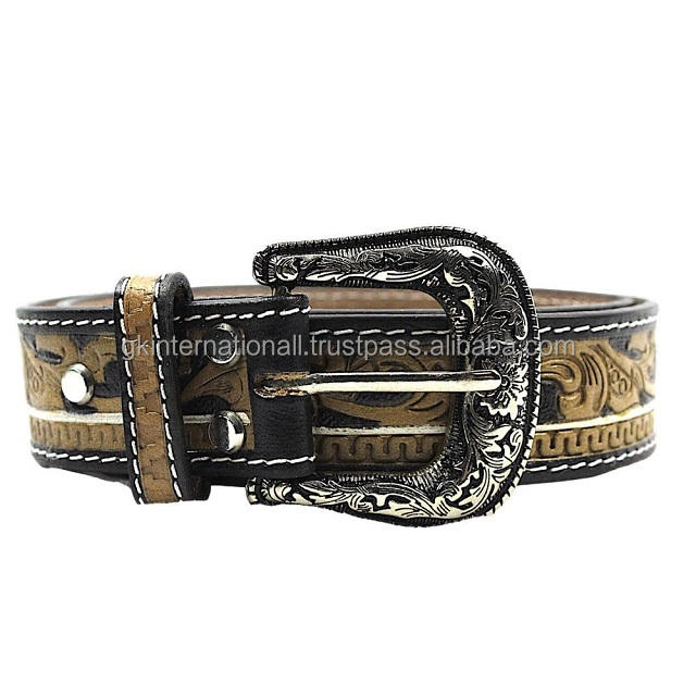 Luxury Handmade Western Leather Tooling Belt for Men and Women Floral Embossed Tooled Leather Belt for Cowboy