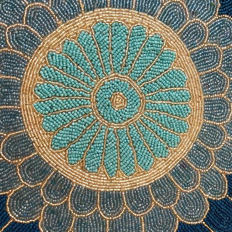 แผ่นรองจานหรูหราทำมือสีขาวเบจประดับลูกปัดลายดอกไม้สวยงาม ทออย่างประณีต เหมาะสำหรับงานเลี้ยง งานแต่งงาน งานขึ้นบ้านใหม่
