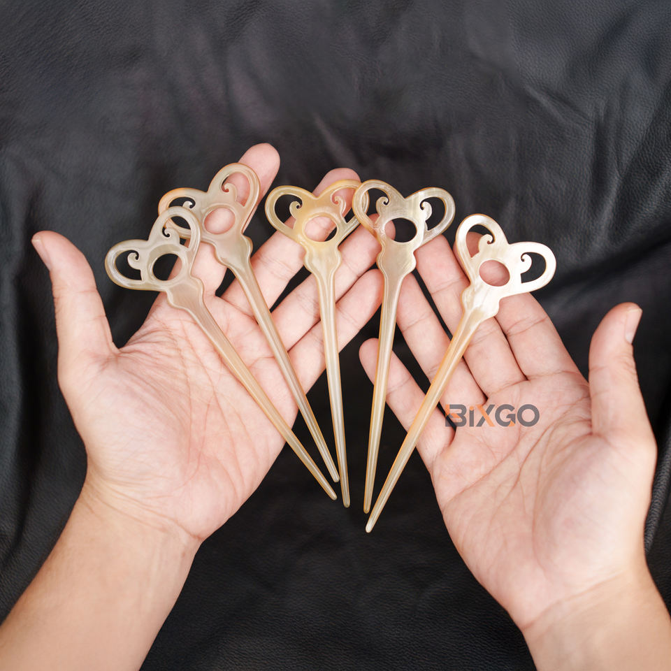 อุปกรณ์ตกแต่งผมทำจากไม้ทำด้วยมือสุดหรูสำหรับผู้หญิงมวยผมยาวและมวยผมยาวทำจากเขาวัวธรรมชาติ