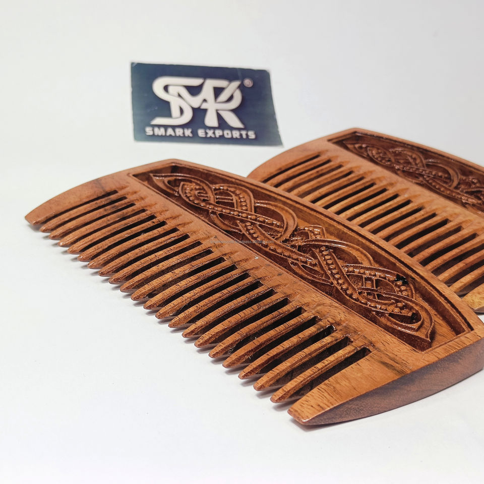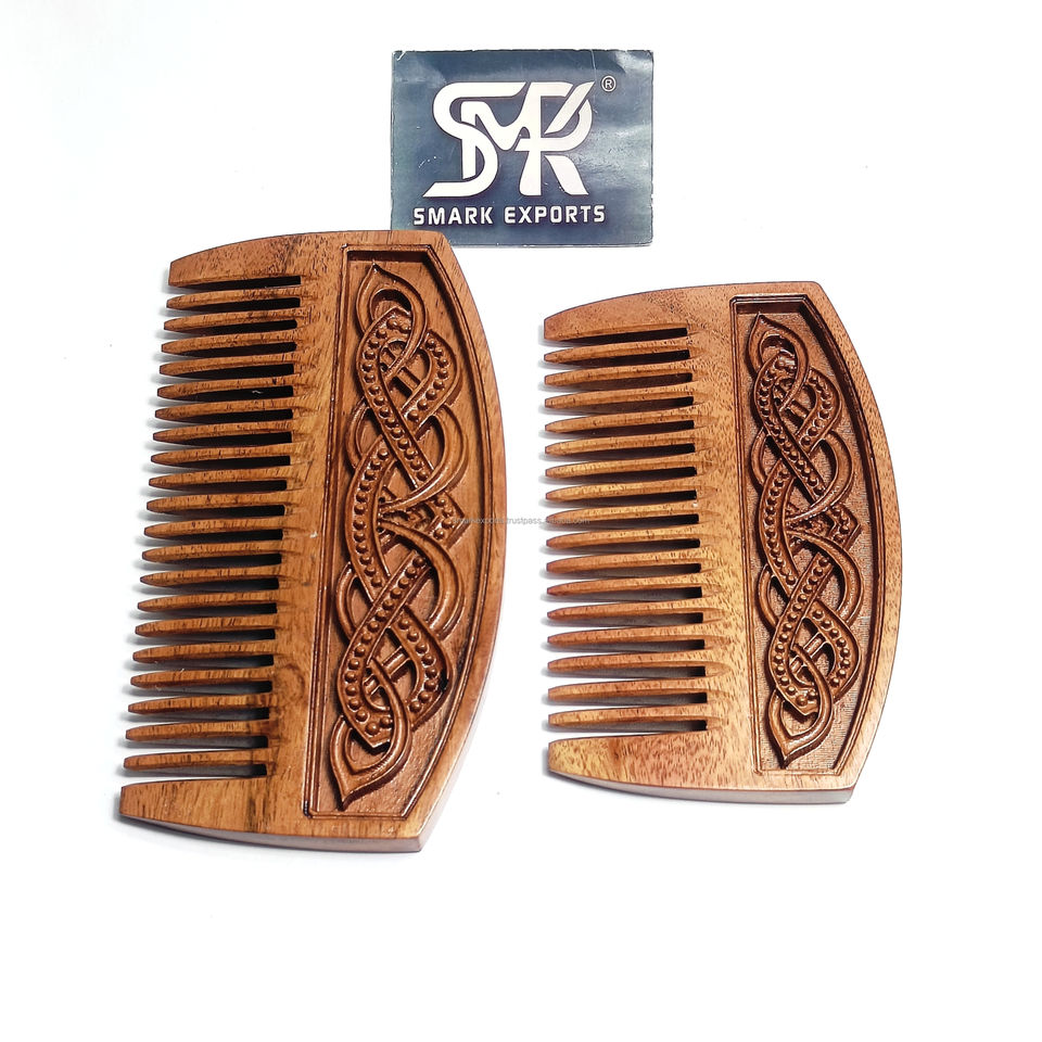 หวีไม้ทำด้วยมือสุดหรูพร้อมสลักปมไวกิ้งที่ลึกเหมาะสำหรับการตกแต่งเคราผมหนาและเป็นของขวัญจาก smartexports