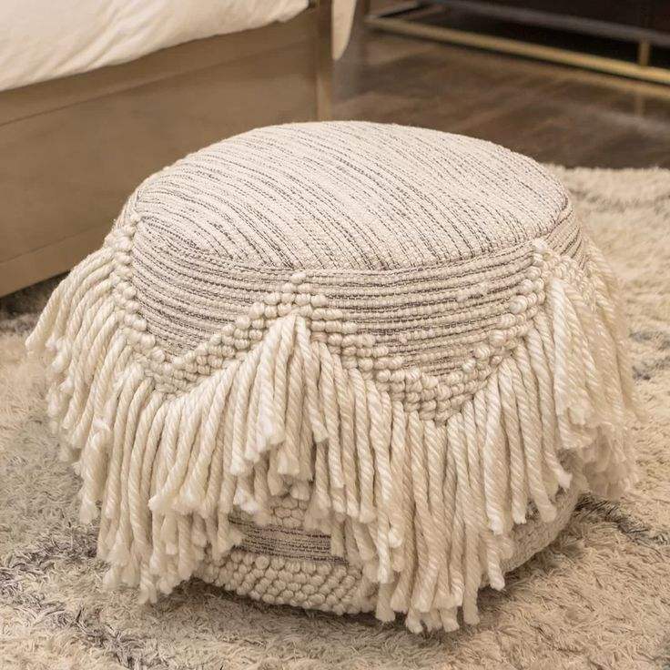 Pouf ทอมือหรูหรา | ผ้าวูลและผ้าฝ้ายผสมออตโตมันสำหรับบ้านทันสมัย