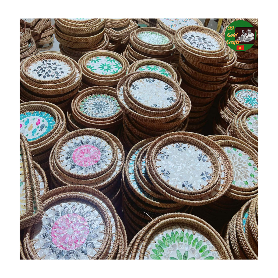 ถาดเสิร์ฟโมเสคหวายสานด้วยมือสุดหรู ประดับมุกผสม สำหรับตกแต่งบ้านและบริการร้านอาหาร ราคาดีที่สุด
