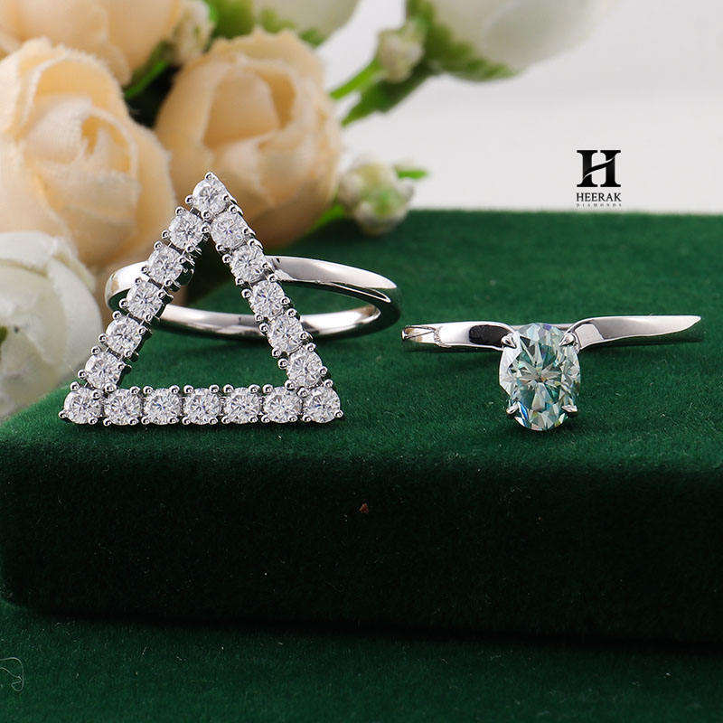 แหวนเพชรทรงหัวใจหรูหรา แหวนแต่งงานทองคำขาว 14K ประดับเพชรแล็บเกรดพรีเมียม แหวนครบรอบแต่งงานระยิบระยับ ผลิตจากเพชรแล็บ