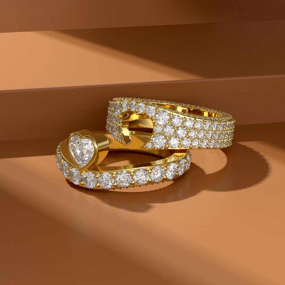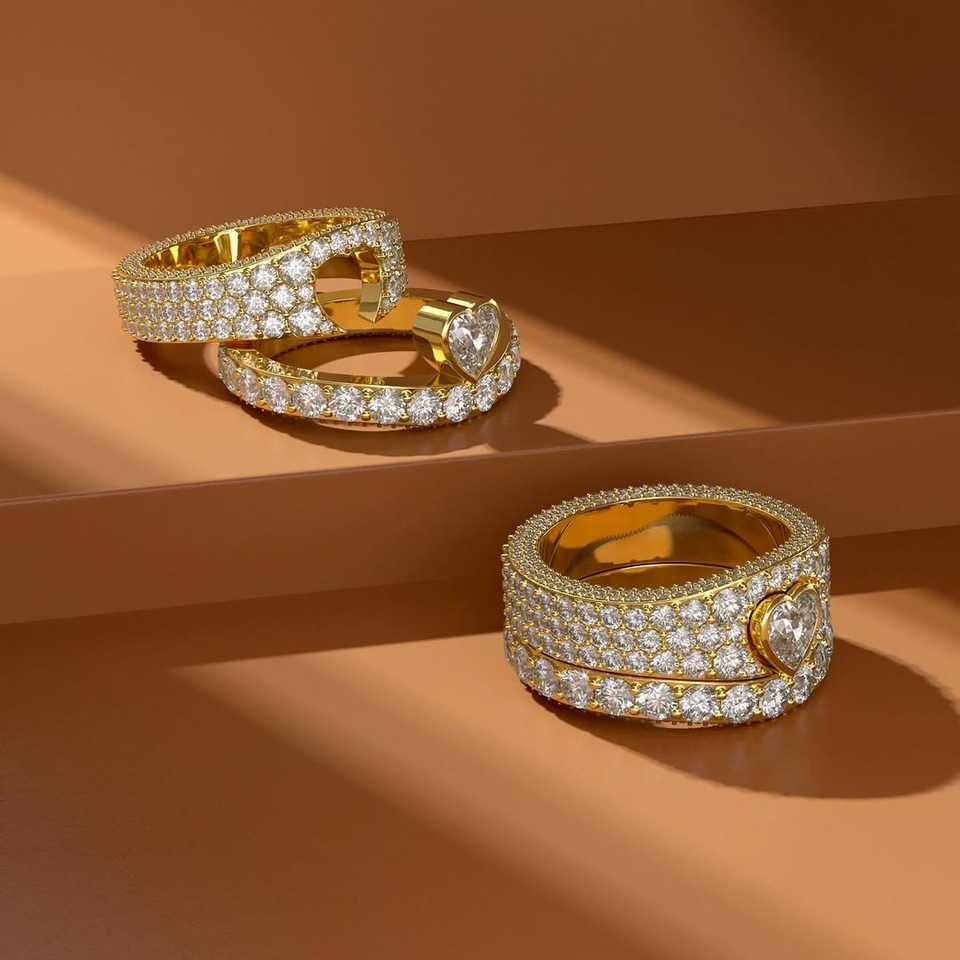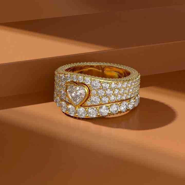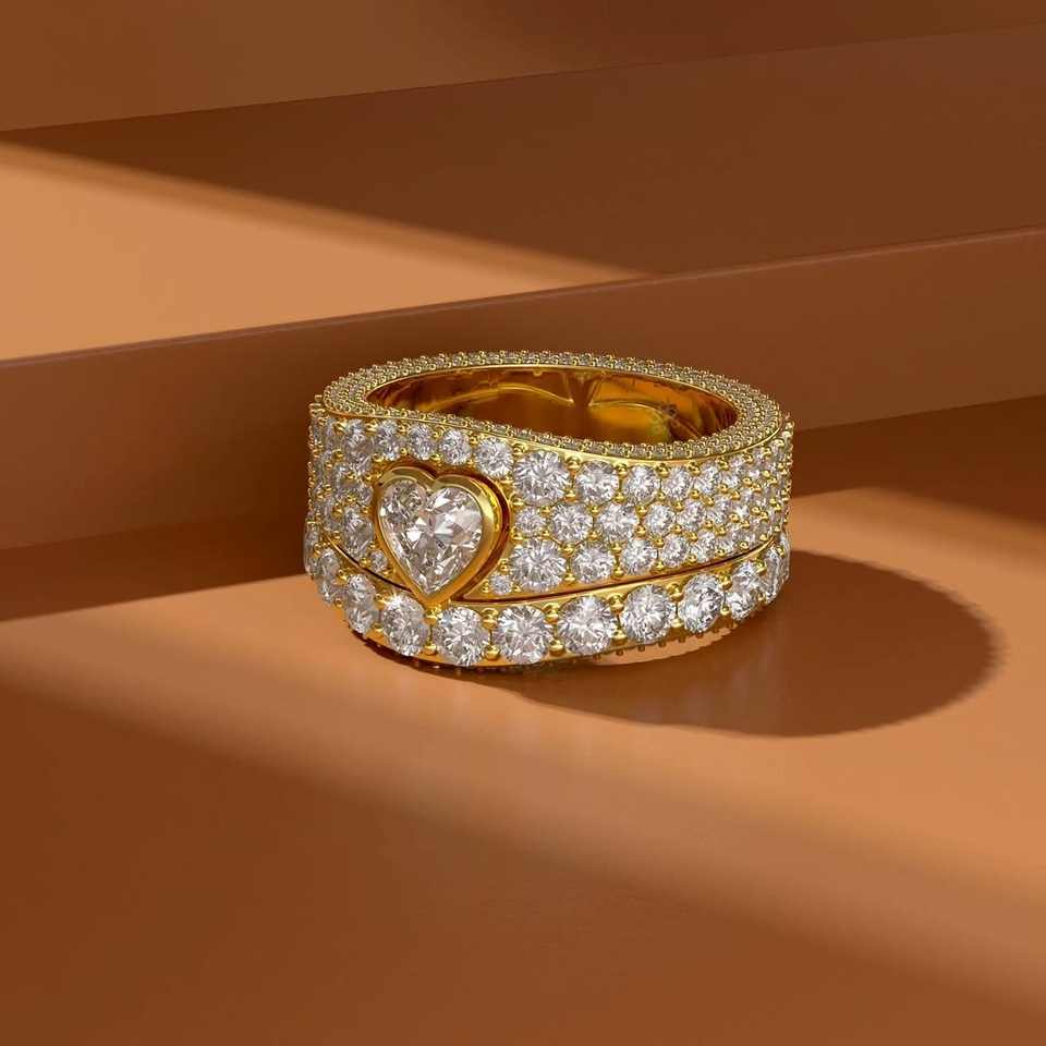 แหวนเพชรรูปหัวใจสุดหรู ชุดแหวนทองคำ 14K 18K สีเหลือง ประดับเพชรเต็มวง แหวนหมั้นเจ้าสาว เครื่องประดับสั่งทำพิเศษ ขายส่ง