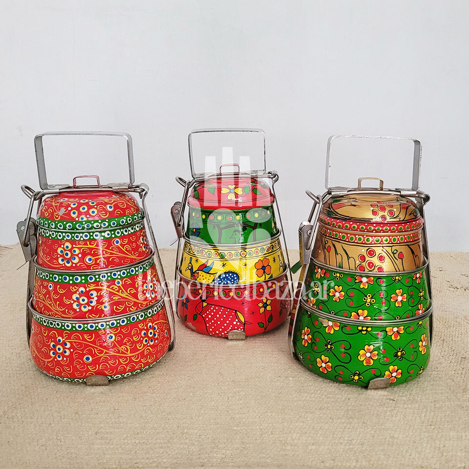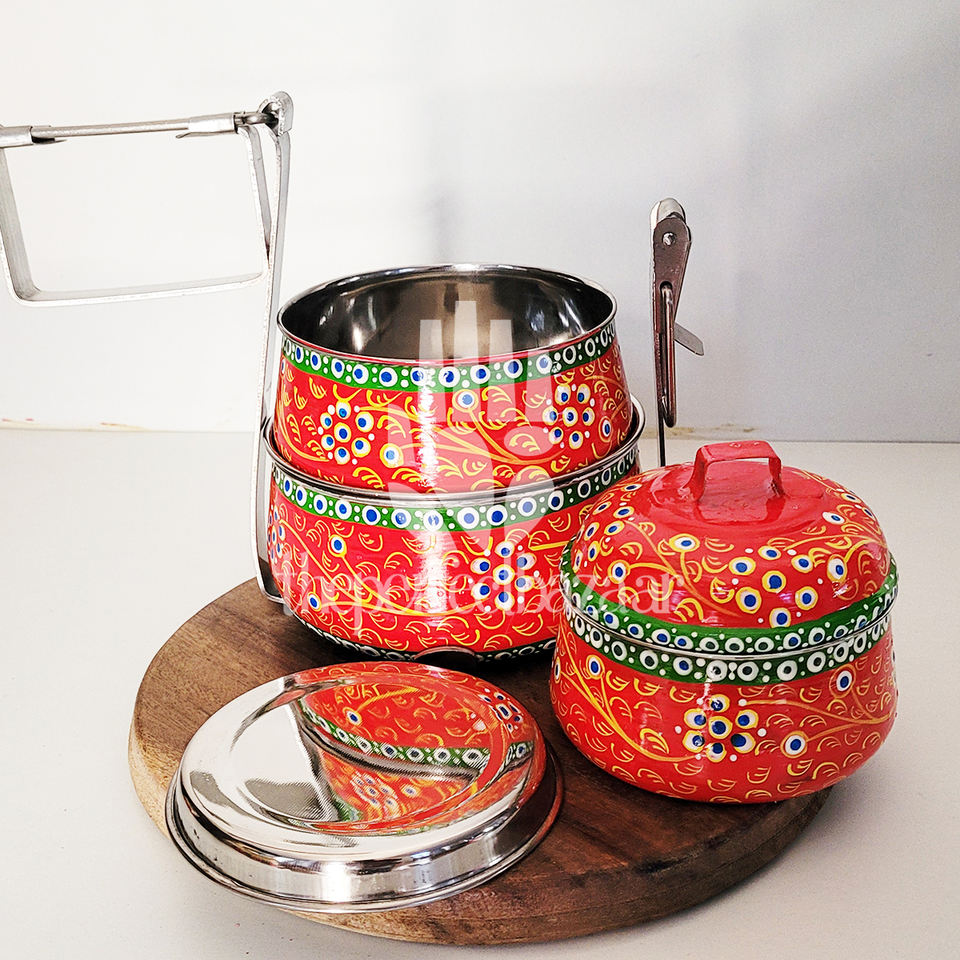 กล่องข้าวสแตนเลสแบบสามชั้น ระดับพรีเมียม ทนความร้อน ใช้กับเครื่องล้างจานได้ เป็นมิตรต่อสิ่งแวดล้อม 3 ช่อง ลายเพ้นท์มือ