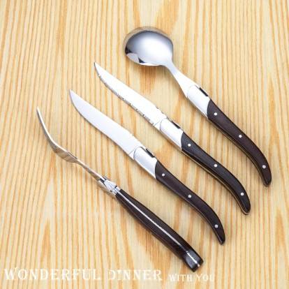 ชุดเครื่องใช้บนโต๊ะอาหารสุดหรูสำหรับงานแต่งงานด้ามจับเรซินเป็นมิตรกับสิ่งแวดล้อมฝังด้วยหมุดย้ำและหัวสแตนเลส