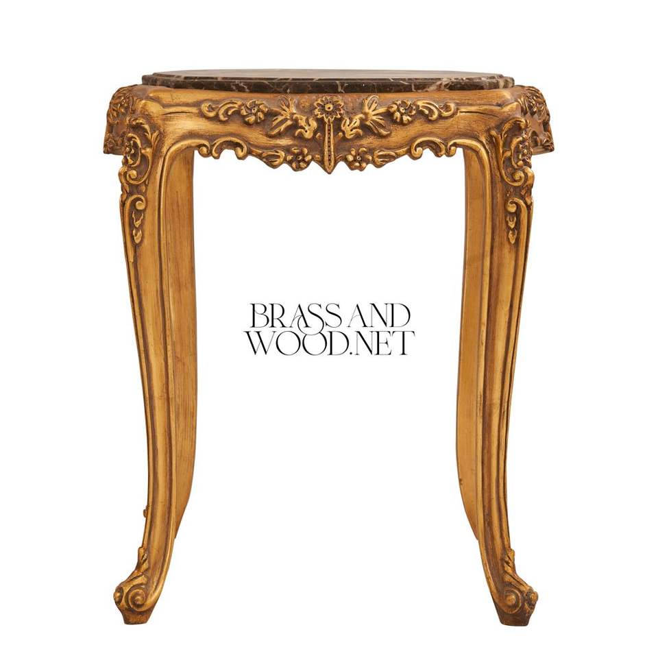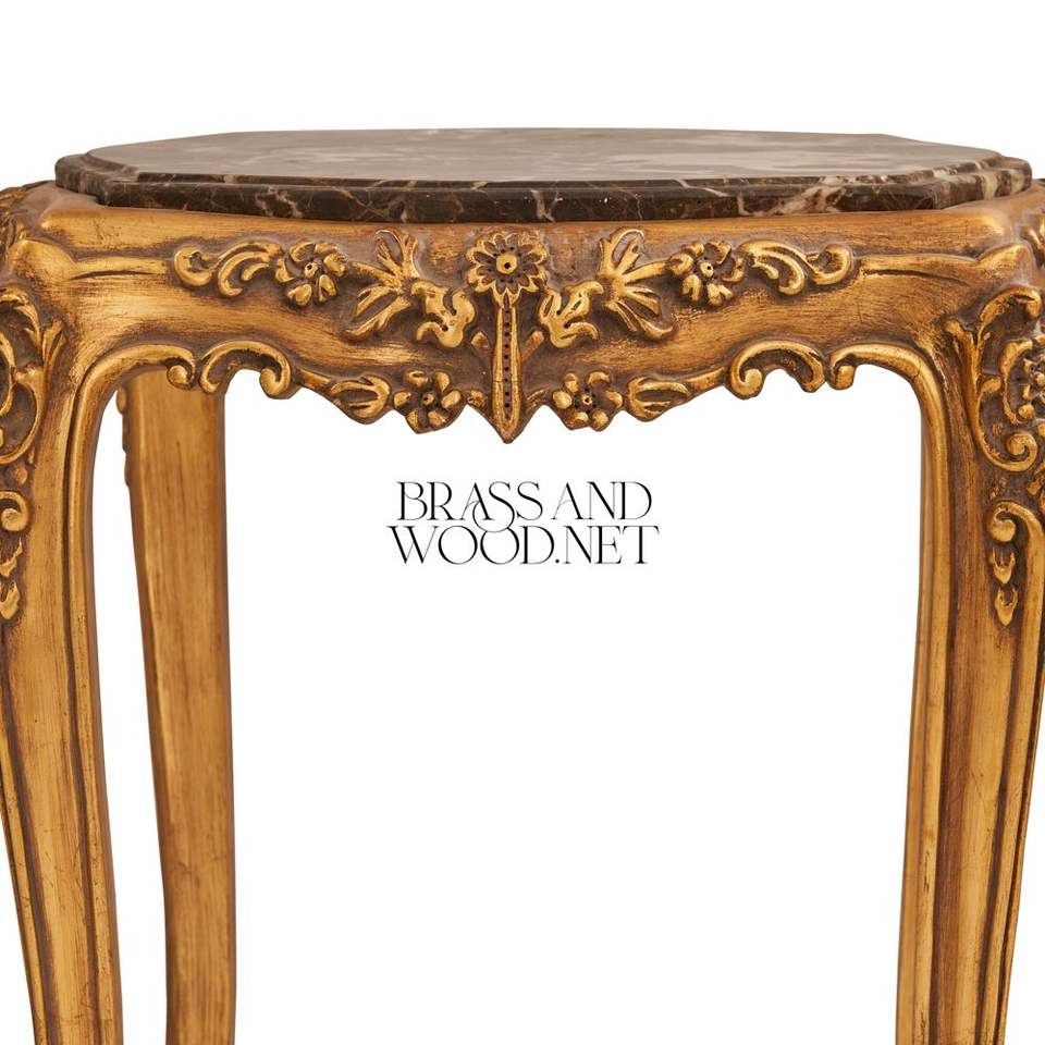 โต๊ะข้างทรงหกเหลี่ยมสุดหรูหราพร้อมท็อปหินอ่อนสีเข้มลายจักรพรรดิและขาแกะสลักลายทองคำแบบบาโรกสำหรับตกแต่งพระราชวัง