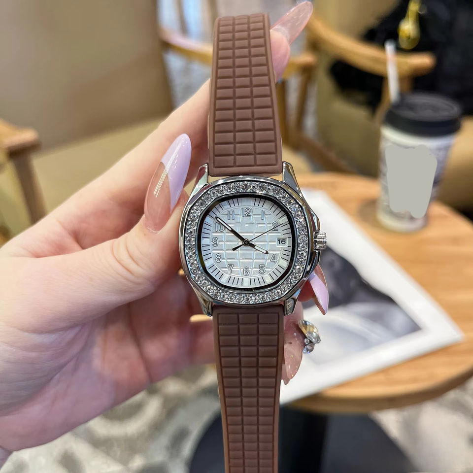นาฬิกาดีไซน์เนอร์ระดับไฮเอนด์สุดหรูสำหรับผู้หญิงทำจากเซอร์โคเนียตัวเรือนสี่เหลี่ยมเพชรเต็มรูปแบบกล่องใส่โลโก้ได้ตามต้องการ