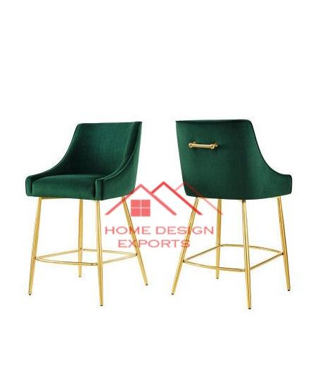 เก้าอี้บาร์หมุนสีทองสำหรับโรงแรมไนท์คลับหนังสีเขียวมรกตหรูหราระดับไฮเอนด์