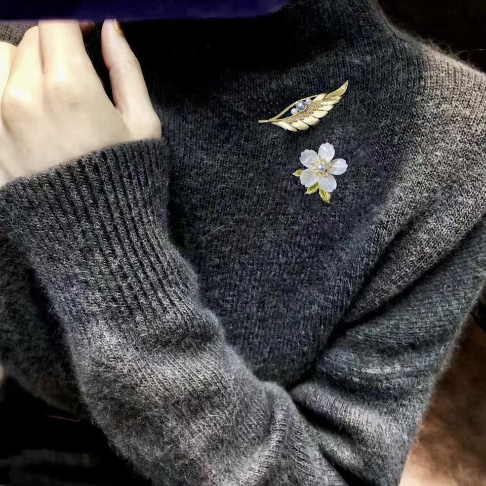 เข็มกลัดมุกน้ำจืดธรรมชาติระดับไฮเอนด์ หรูหรา ประณีต ดอกไม้แกะสลักจากมุก สง่างาม เหมาะกับชุดกี่เพ้า