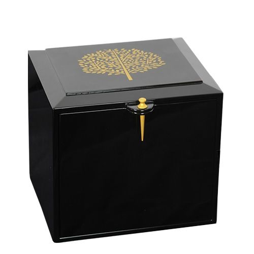 โกศเผาศพทำจากไม้สีดำมันวาวสูงดีไซน์หรูทนทานกันการรั่วซึมดีไซน์แบบยั่งยืนสีทองระดับพรีเมียมสำหรับต้นไม้แห่งชีวิต