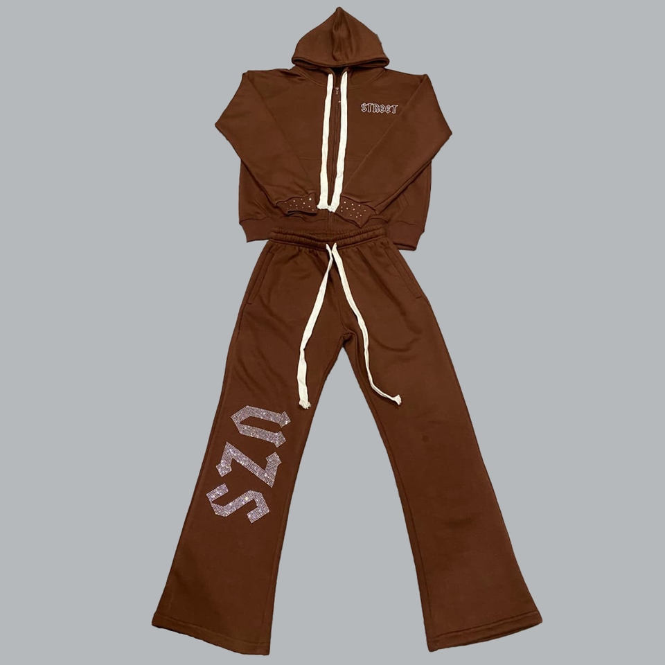 ชุดกีฬาสำหรับผู้ชายชุดวิ่งออกกำลังกายแบบเรียงซ้อนกางเกงขาบานสีพื้น
