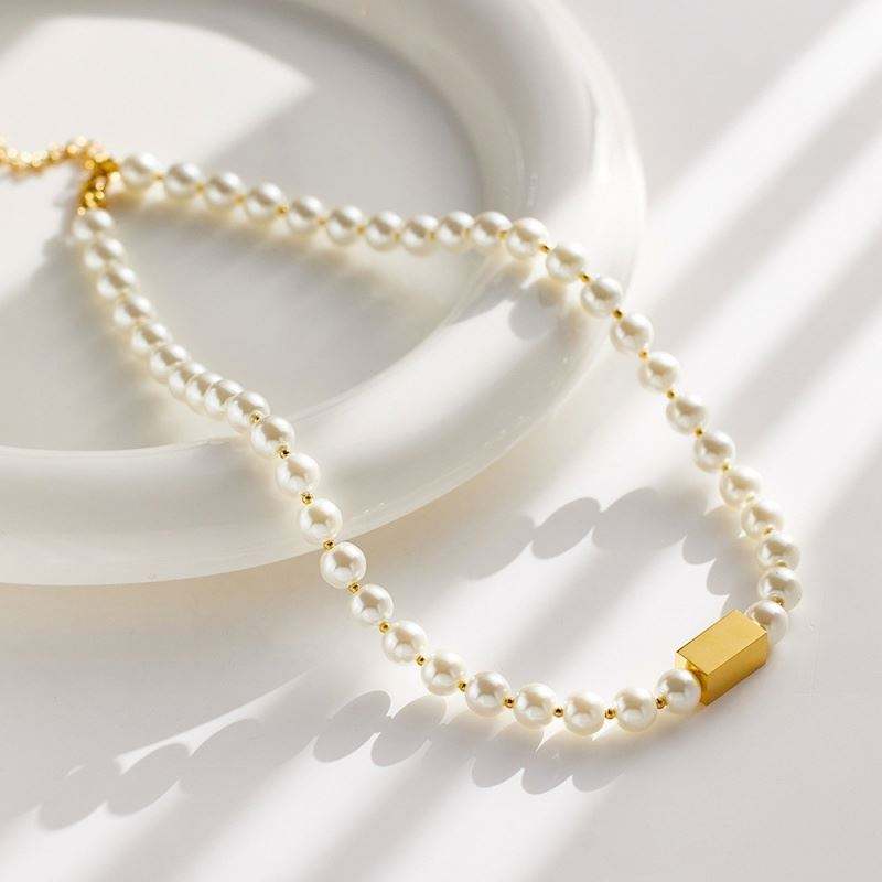สร้อยคอไข่มุกน้ำจืดขนาดเล็กหรูหราชุบทอง18K จี้สแตนเลสแฟชั่นสำหรับผู้หญิง