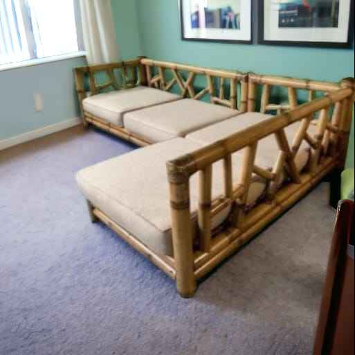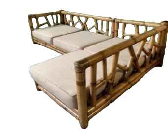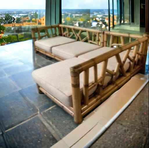 ชุดโซฟาไม้ไผ่แบบแยกส่วนรูปทรงตัว L หรูหราชุดเฟอร์นิเจอร์สวนลานนั่งเล่นกลางแจ้งสำหรับกลางแจ้ง