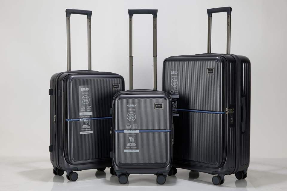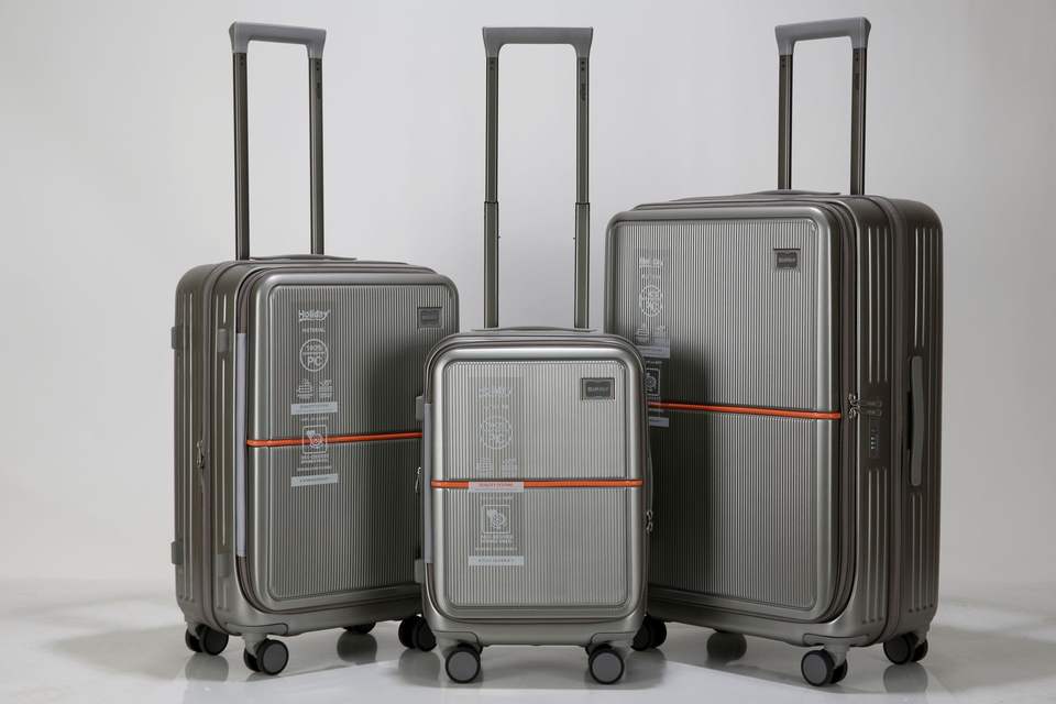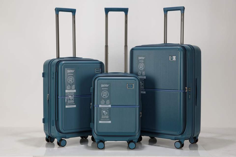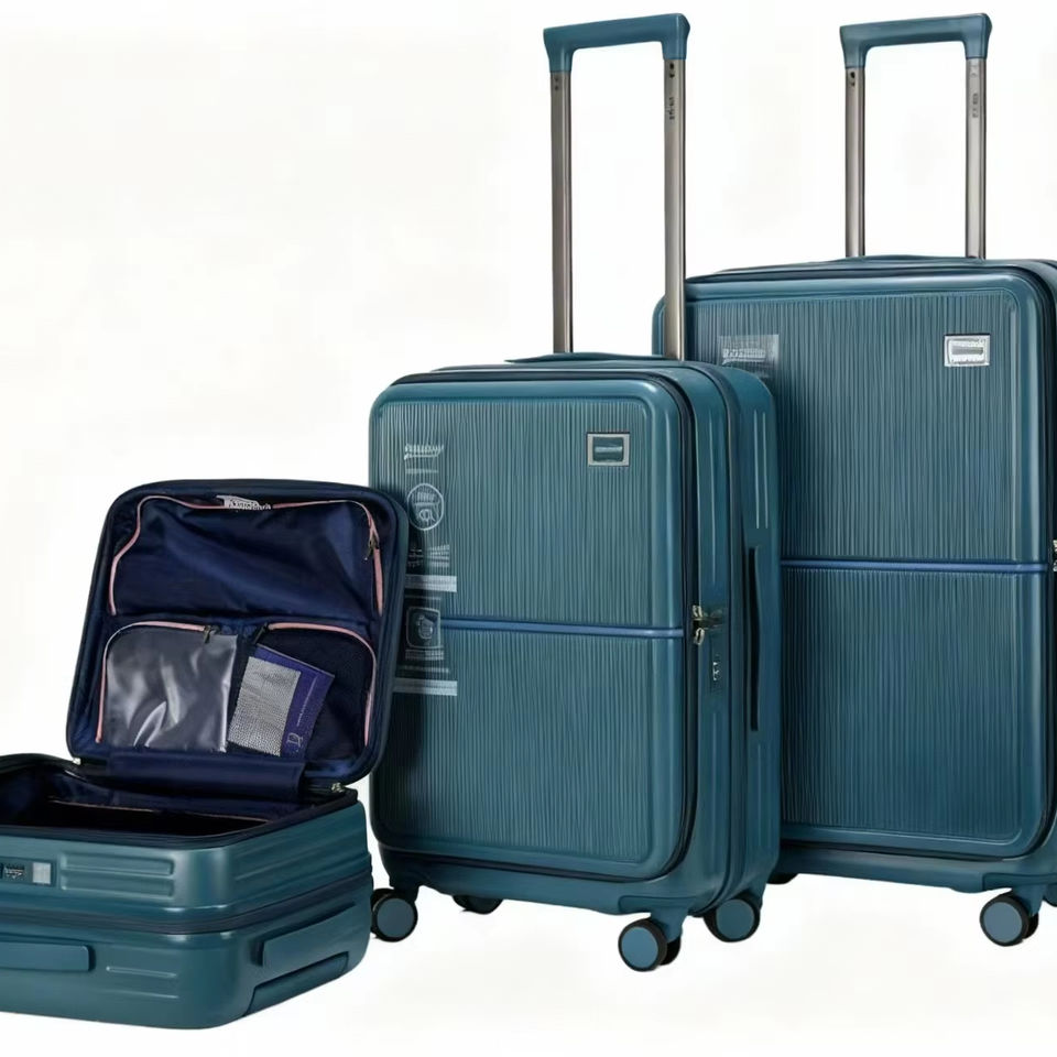 กระเป๋าเดินทางพีซีสุดหรู คุณภาพสูง ดีไซน์เรียบง่าย ทันสมัย พร้อมช่องด้านหน้า น้ำหนักเบา ทนทาน โครงอะลูมิเนียม ล้อลาก TSA Lock 8 ล้อ