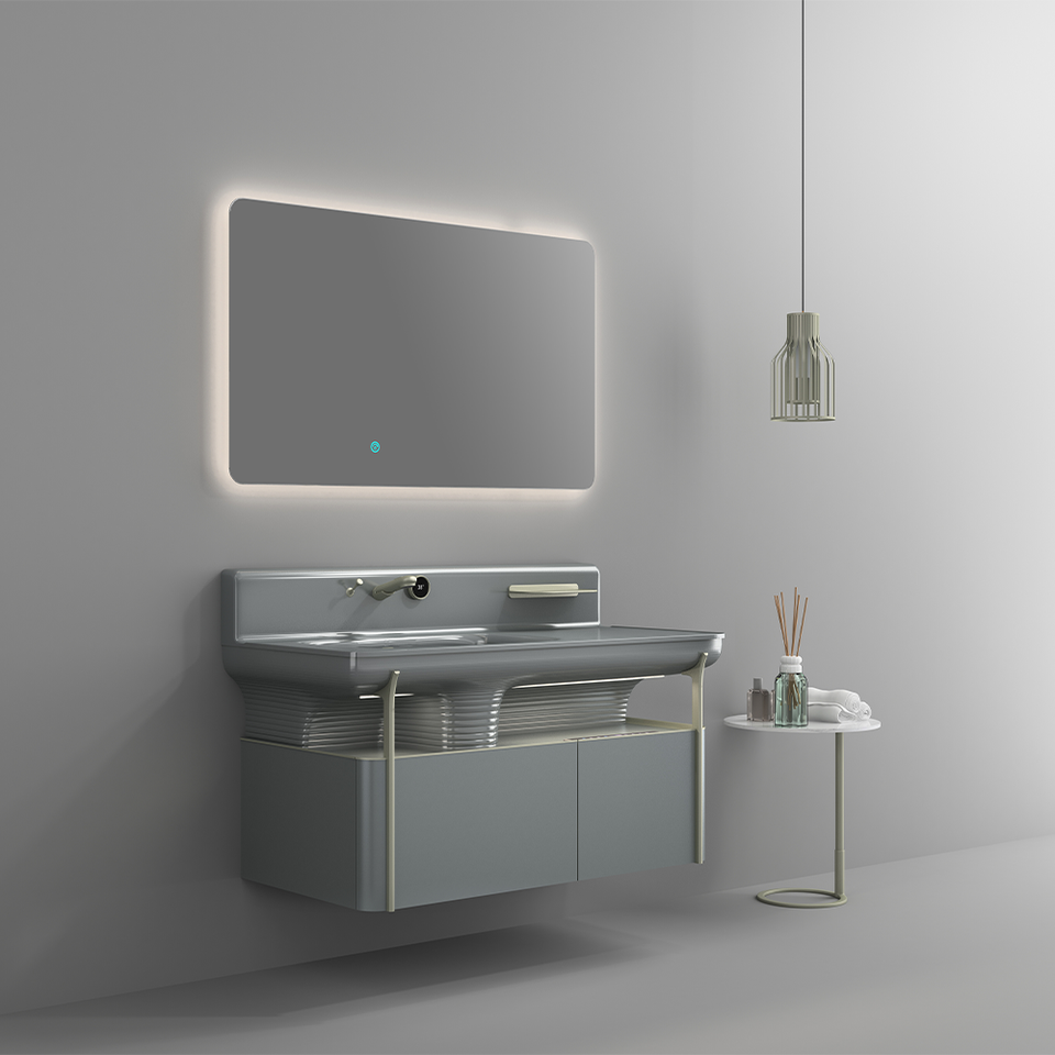 อ่างหินเทียมแบบ24A กันน้ำได้หรูหรารับประกัน5ปีโต๊ะเครื่องแป้งในห้องน้ำกระจกอัจฉริยะสำหรับห้องน้ำ