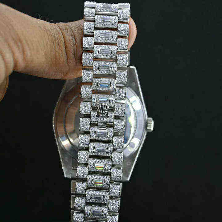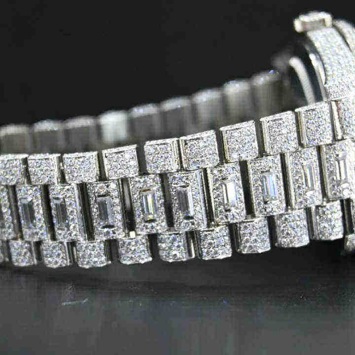 นาฬิกาฮิปฮอปหรูหรา ดีไซน์แบบอนาล็อก ตกแต่งแบบไอซ์ ระดับไฮเอนด์ พร้อมเครื่องทดสอบโมอิสซาไนต์ VVS สำหรับการตรวจสอบกลไก ดีไซน์ทันสมัย ประดับเพชร กระจกยุคใหม่