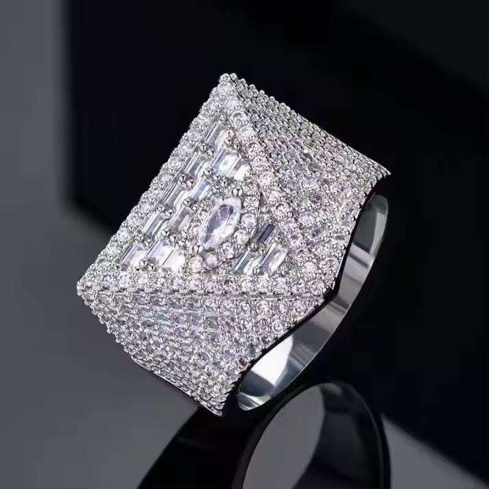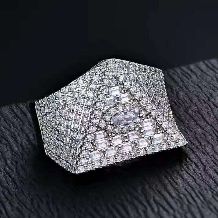 แหวนฮิปฮอปสุดหรูสำหรับผู้ชาย แหวนแชมป์ประดับเพชรโมอิสซาไนต์ ชื่อสลักชัดเจน ชุบโรเดียม ผลิตในอินเดีย