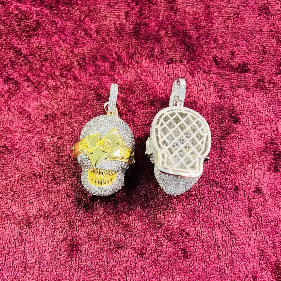 จี้หัวกะโหลกสไตล์ฮิปฮอปสุดหรูแบบกำหนดเอง14K สีเหลืองทองชุบ VVS Moissanite จี้ดีและหินเม็ดเพชรหลักสำหรับทั้งชายและหญิง