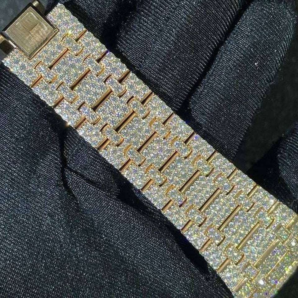 นาฬิกาเพชรแบบฮิปฮอปสุดหรูสายรัดกลไกได้รับการรับรอง GRA VVS Moissanite นาฬิกาอัตโนมัติสำหรับผู้ชาย