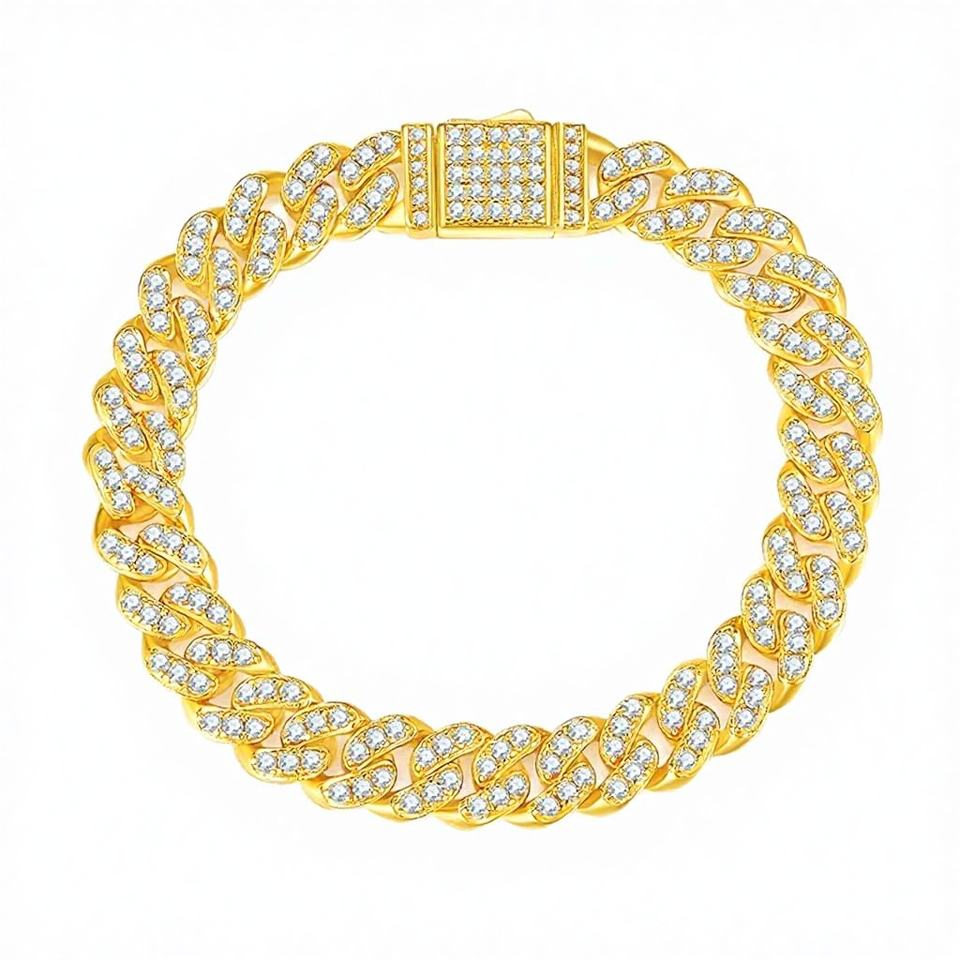 เครื่องประดับฮิปฮอปสุดหรู สร้อยข้อมือเงินแท้ 925 ชุบโรเดียม/ทอง ขนาด 6 มม. ประดับเพชรโมอิสซาไนต์ทรงบริลเลียนต์ ได้รับการรับรอง GRA ระดับ VVS