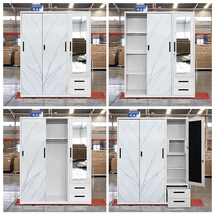ตู้เสื้อผ้าบ้านหรูหรา 2 3 4 บานเลื่อนโลหะ - ตู้เสื้อผ้าเหล็ก