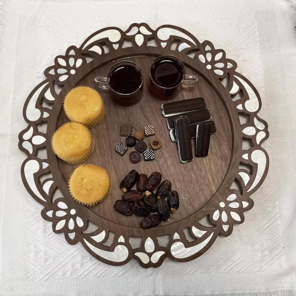 ถาดของขวัญและของตกแต่งบ้านสุดหรูสำหรับรอมฎอนและอีด ถาดใส่ช็อคโกแลตงานฝีมือดีไซน์แบบอาหรับประดับมุก
