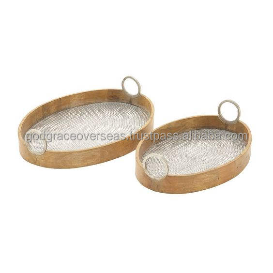 ถาดอลูมิเนียมสำหรับเสิร์ฟอาหารพร้อมที่จับชุดตกแต่งบ้านสุดหรูถาดอาหารหวาย2ชิ้นสำหรับรับประทานอาหารเช้างานปาร์ตี้ครัว