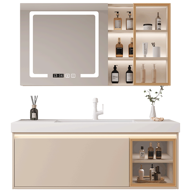 X12B8711โต๊ะเครื่องแป้งในห้องน้ำ MDF ติดผนังดีไซน์สไตล์เยอรมันพร้อมกระจกเหล็ก