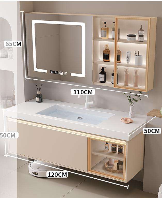 อ่างล้างหน้าไม้เนื้อแข็งหรูหราสำหรับตกแต่งบ้านตู้ห้องน้ำห้องน้ำโต๊ะเครื่องแป้งกันน้ำขายส่ง