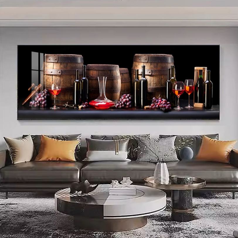 ของตกแต่งบ้านสุดหรูพร้อมภาพพิมพ์ความละเอียดสูงลายไวน์แดงสำหรับห้องรับประทานอาหาร ของตกแต่งบ้านคริสตัลพอร์ซเลน ภาพจิตรกรรมฝาผนัง LED