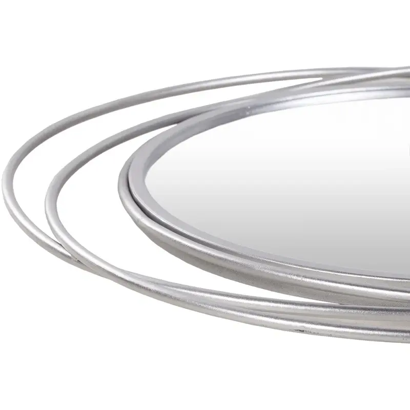 กระจกโลหะสีเงินติดผนังวงกลมทรงกลมตกแต่งบ้านสุดหรูหนา5มม. สำหรับแขวนติดผนังห้องแต่งตัว